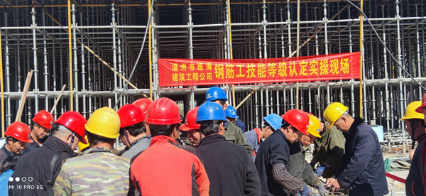 近日,公司首期職業(yè)技能等級(jí)認(rèn)定在甌海區(qū)茶山街道中心區(qū)D-44地塊舉行,現(xiàn)場(chǎng)進(jìn)行了鋼筋工技能等級(jí)認(rèn)定實(shí)操及理論考試。